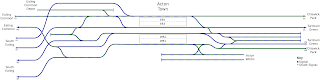 | The second (oh yes, there's two) signalling diagram of Acton Town showing the area to the east of the station. Image provided courtesy of "District Dave" (http://www.districtdave.co.uk/html/acton_town.html) |